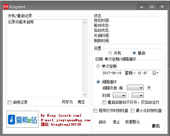 文件目录:kingstart.exe-操作界面程序/kingsrv.exe-定时循环重启服务