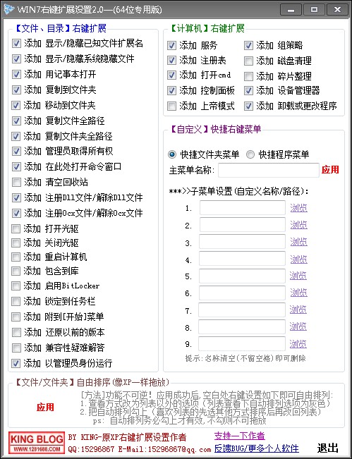 2013年写的,当时刚开始使用win7,和xp右键扩展一样都是在赢政论坛首发的